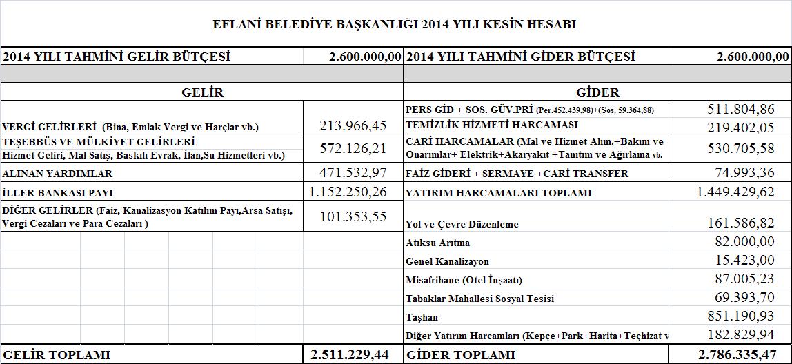 BELEDİYEMİZİN 2014 YILI KESİN HESAP CETVELİ